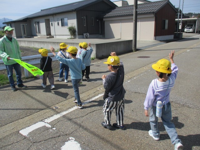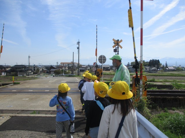 1・2年生は交通安全教室を行いました。列になって歩くこと、踏切や横断歩道を安全に渡ることに特に気を付けて学習しました。一人一人がしっかりと安全確認をすることができました。