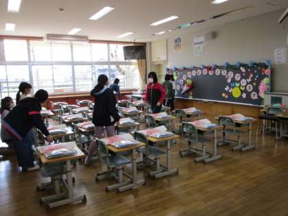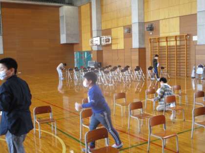 6年生の子供たちは、早速入学式の準備をしてくれました。アリーナのいすを並べたり、1年生教室を整えたり、手際よく働いてくれました。みんなありがとう。