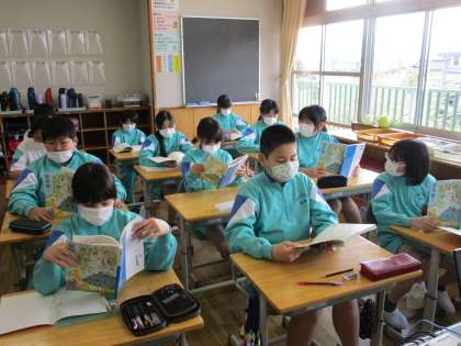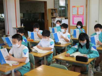 今日から6時間目まで本格的に授業が始まりました。6年生の子供たちは、落ち着いて学習に取り組んでいます。写真は国語科「詩を楽しもう」の学習の様子です。