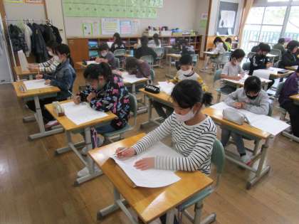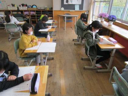 学力調査に臨む子供たちの様子です。今日は国語と理科でした。子供たちは、時間内に全問解ききれるように集中して取り組んでいました。結果やいかに…!?