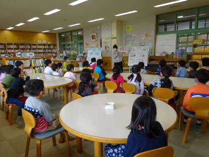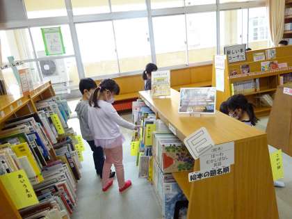 子供たちは、目の前にあるたくさんの本に目を輝かせ、わくわくした気持ちでお話を聞いていました。読みたい本を2冊選び、早速読む姿が見られました。これから自由に本を貸し借りできますので、図書室にたくさん足を運びましょう!