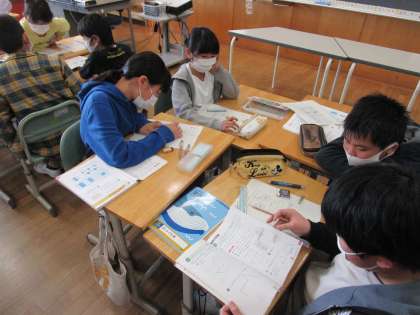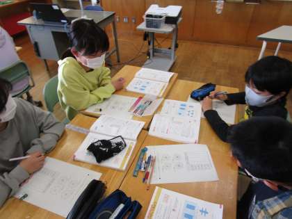 今日の算数科の学習では、今まで習った正多角形について、「線対称な図形」か「点対称な図形」かを調べました。友達と考えを交流しながら学習を進めています。