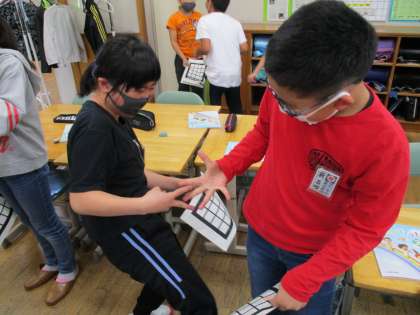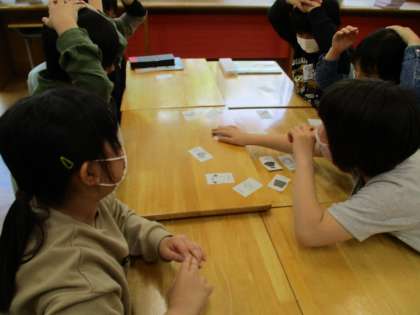 外国語活動は、とにかくゲームラッシュでした。5秒で描いた絵を予想して答えたり友達とじゃんけんしてビンゴを目指したりして、大いに楽しみました。もちろん、なるべくEnglishでがんばっています!