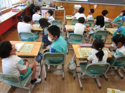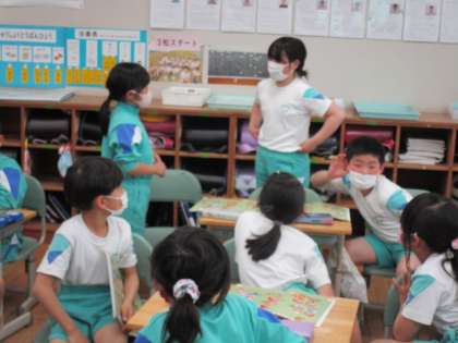 5連休明け、38人全員が元気に登校した3年生の子供たち。外国語の学習では、天気を表す表現や「How are you?」に対する答え方をおさらいしました。チャンツにも挑戦し、表現に慣れ親しみました。