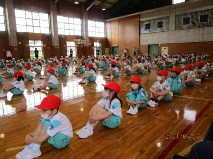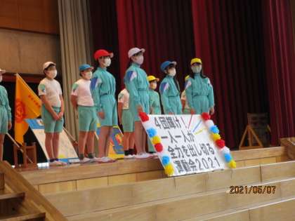 今日は、運動会に向けて「結団式」がありました。これから、運動会の練習で体力を使います。しっかりと食べて、ぐっすりと眠って、朝すっきりと起きて学校に来ましょう。