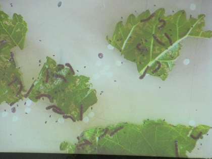 【5月12日】3年生 興味津々!蚕種が孵化したよ