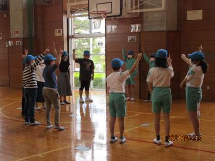 下学年にどうやって動作や歌を教えるか。雰囲気をどうやって盛り上げるか。根気強く、工夫している姿が印象的でした。がんばれ!6年生。