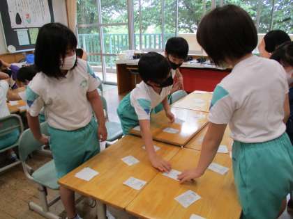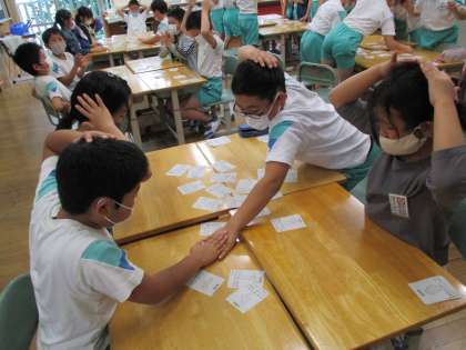 都道府県の学習が楽しいようで、休憩時間にも都道府県カルタをしています。形を見ただけで都道府県名を即答するなどハイレベルな戦いが繰り広げられています。