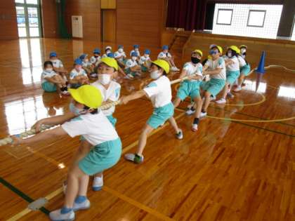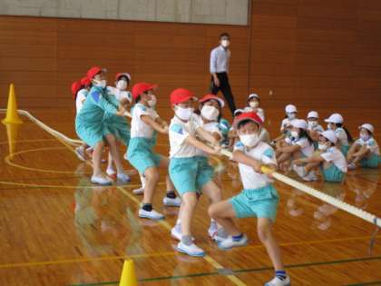 運動会の団体競技で綱引きをします。3年生にとっては、初めての綱引きです。今日は、すでに経験済みの4年生に教えてもらいながら、綱にさわるところから勉強しました。全身を使い、両足で踏ん張り、チーム全員が一致団結し全力で競技できるようになりました。本番が楽しみです。