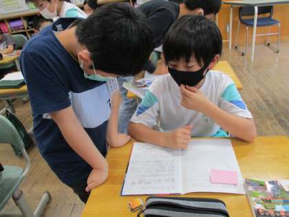 社会科の学習では、生活に欠かすことのできない水について考えました。「何に使われるか」「いつでも使うことができるのか」「どこから、どういう仕組みで流れているのか」考えたことをノートにまとめました。それを友達と見合い、話し合うことで互いの考えを広げていました。気になることを、どんどん調べていきましょう!