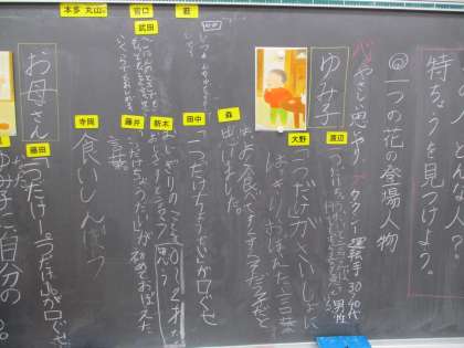 国語科では、「一つの花」を読み、話の世界に入り始めました。今日は、叙述の中の行動や発言から登場人物の特徴や性格を考えました。子供たちから出た考えを起点として読みを深めていきます。