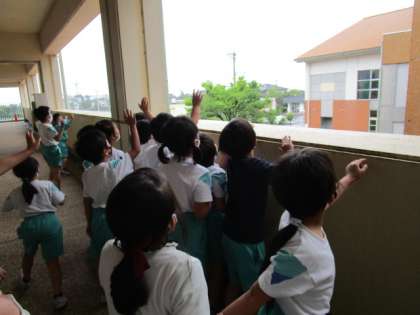 今日は、子供たちの要望で、虫かごから出してあげようということになり、晴れ間を見つけて自然に帰してあげることができました。モンシロチョウの様子を見て、みんな気持ちがポカポカしました。