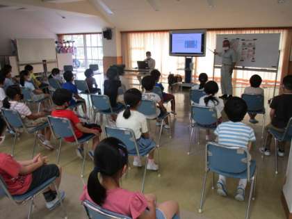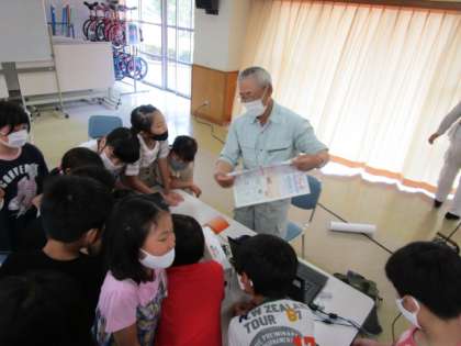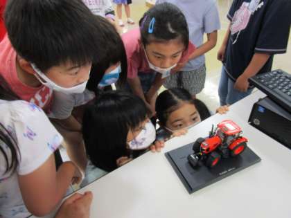 今日は、事前学習としてファーム高善寺から、お二人の講師の方に来ていただき、大豆の育て方を教えていただきました。栽培作業の自動化が進んでいるというお話も、子供たちは興味をもって聞いていました。