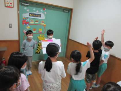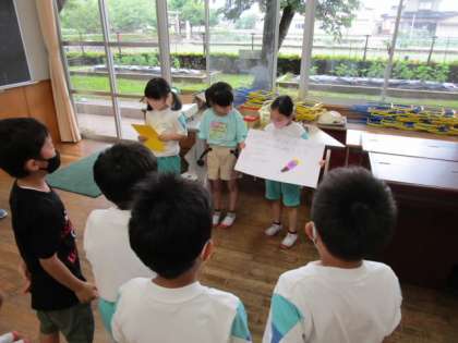 1年生を招待して、学校探検をしようと考えています。今日はそのリハーサルを行いました。各特別教室の紹介や考えたクイズを1年生に伝わるように気をつけて話したり、進んで声をかけたりするなど本番に向けて取り組みました。