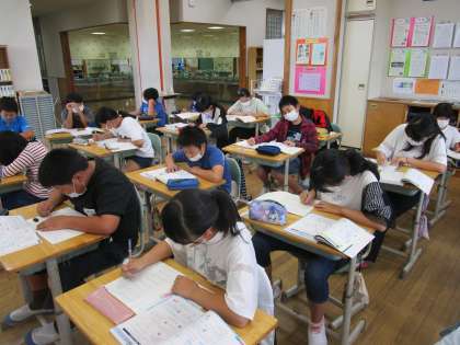 今日の算数科の学習では、「分数のわり算」のまとめの問題に取り組みました。分からない問題は、教科書やノートを見直し、計算の仕方を確認しながら進めています。