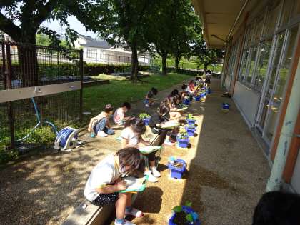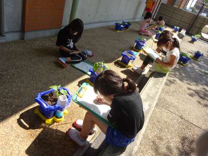 生活科では、アサガオの観察を行いました。毎日大きくなっていくアサガオを見て、「本葉の間から出ているのは、何だろう?」「葉っぱがふわふわしているよ!」などと、細かいところまでよく観察している子供たちでした。間から伸びているものが何か、また調べてみましょうね!