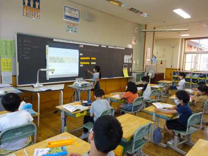 算数科では、たしざんの学習を進めています。「みんなで」「ぜんぶで」「あわせて」などのたしざん言葉を探し、みんなの前で計算の仕方を発表しました。たしざん言葉を見付けることが上手になってきましたね!