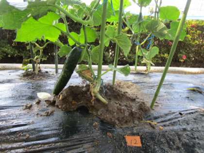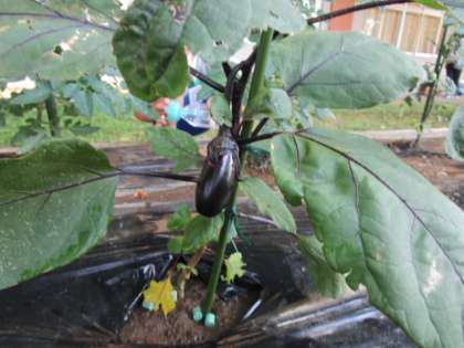 子供たちは、毎日水やりを欠かさず、じっくりと野菜の様子を観察しています。今日は、きゅうりとピーマンを収穫しました。次はどの野菜が収穫できるか楽しみです。