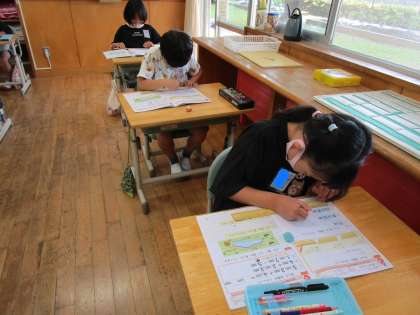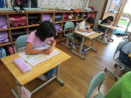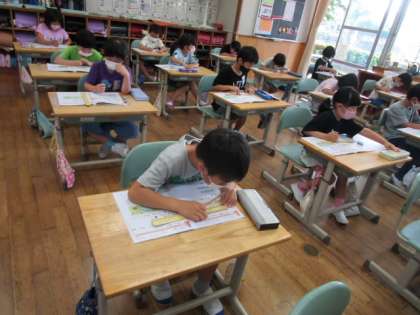 算数では、「竹ものさし」を使って、直線を引く練習をしています。ものさしをしっかりと押さえてまっすぐ引く!ことを意識して、取り組みました。