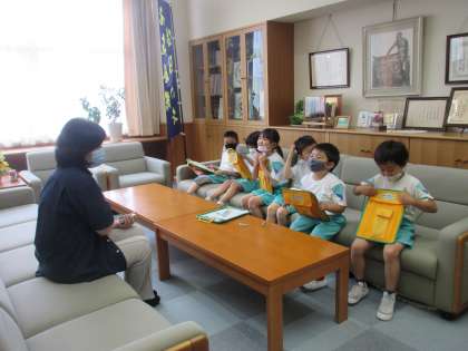 生活科の学習では、先生方へのインタビューを進めています。今日は、校長先生にインタビューをしました。「1松の好きなところは何ですか?」「好きな○○は何ですか?」など、1年生らしい視点でたくさんの質問をしていました。インタビューを終えた子供たちは、「たくさん聞けたよ!」と嬉しそうな表情でした。今日、聞いたことを他の友達にも広めましょう!