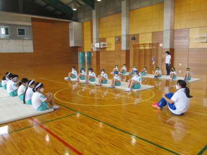スポーツ指導員の方が来られ、マット運動を教えていただきました。前転や後転がぐんとレベルアップし、多くの子供たちができる喜びを実感する時間となりました。