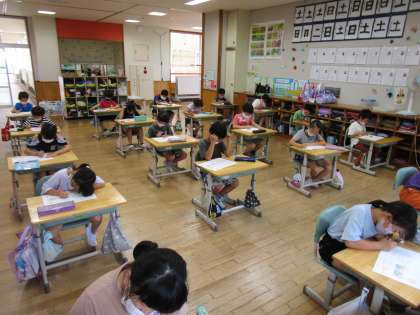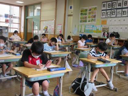 一学期の「学習のたしかめ」が始まっています。昨日は国語、今日は算数に取り組みました。子供たちは、各自が科目ごとに目標をもって臨んでいます。みんなの真剣な姿が素敵です。