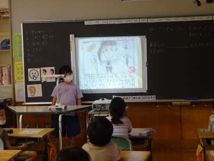 生活科では、今までの学校探検でインタビューをしたことや見付けたことを発表しました。みんなの前で発表することに緊張している様子でしたが、はきはきと大きな声で伝えることができました。