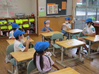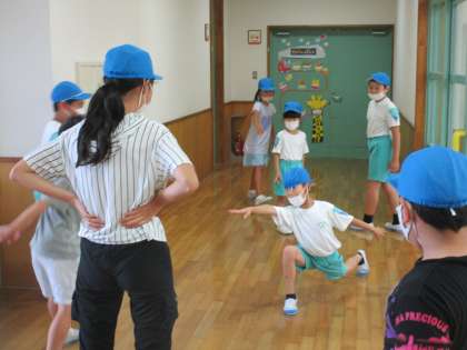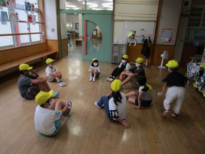 青団はトランプやだるまさんが転んだ、黄団はハンカチ落としなどをして楽しみました。