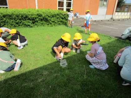 生活科の学習で、学校の周りにいる生き物を探しました。