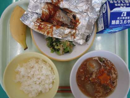今日の献立は、ご飯、牛乳、さばの銀紙焼き、ごま和え、冬瓜のそぼろあん、バナナ です。「冬瓜」は、冬の瓜と書きますが、夏の野菜です。冬瓜のほとんどは水分で、サッパリと食べられるので、暑い夏にぴったりです。