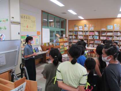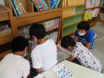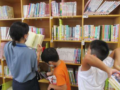 夏休み用の本を借りに図書室へ行きました。今年は、読みたい本を2冊と文字だけの本を3冊の計5冊を、じっくり選びました。夏休みも引き続き、大好きな本に親しみましょう。