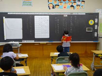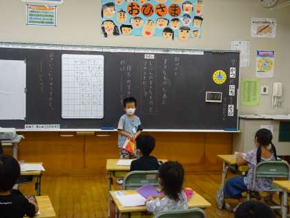 国語科では、自分の好きなものやこと、動物などについて友達に紹介しています。どうして好きなのか、理由をしっかりと書き、全員の前で発表しました。「それが好きなんだ!」「知らなかったな!」などと友達の新しい一面を知るきっかけにもなりましたね。