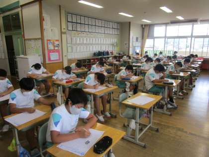 1学期最後のテストは「漢字50問テスト」でした。一生懸命、漢字練習してきた成果を発揮できるよう最後までがんばれ6年生!
