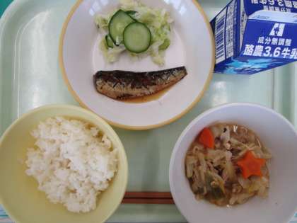今日の給食の献立は、ご飯、牛乳、韓国風すき焼き、いわしの紀州煮、きざみ和えです。