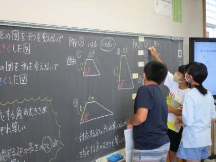 算数科の学習では「拡大図と縮図」の学習を行っています。今日は、教科書の練習問題に取り組みました。