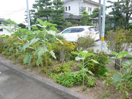 1学期にみんなで植えたひまわりが、大きな花をさかせました。