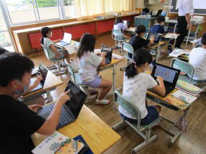 夏休みに頑張った自由研究を紹介し合ったり、早速クロムブックを使って学習に取り組んだり、夏休み気分から一転「2学期も頑張るぞ!」と、やる気を高めている3年生です。