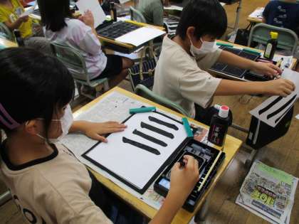 「左右」を美しく書き上げるべく、横画と左はらいの練習をしました。一筆一筆集中して取り組むことができました。基本を大切にし、丁寧に書いていきましょう。