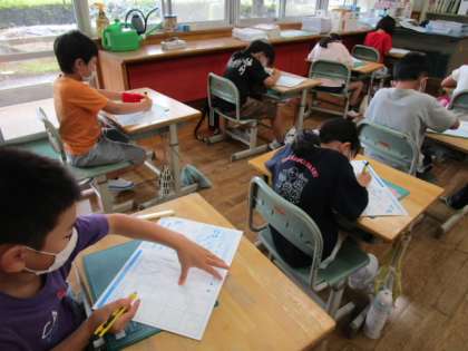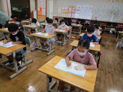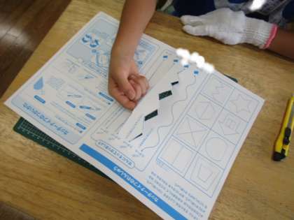 図画工作科では、カッターを使ってまどをあけたら」という作品を作ります。今日はカッターの使い方を学習しました。刃の向きや力の入れ方に気をつけながら、直線、ギザギザ、曲線の切り方を練習しました。