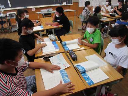 今日の国語科「やまなし」の学習では、「5月」の場面について感じたことをグループや全体で伝え合いました。