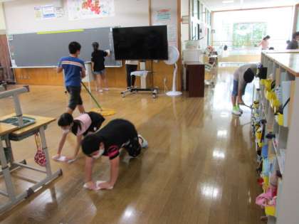 今日は、給食後に「縦割り清掃」を行う日です。子供たちは、どの子も、自分の分担した場所を時間いっぱい黙々と掃除しています。