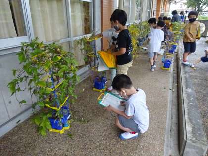 【9月8日】1年生 夏休み後のアサガオはどうかな?