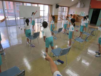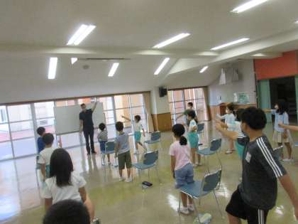 外国語活動では、「ロック!シザース!ペイパー!123!」と英語じゃんけんで始まりました。勝ち抜いたチャンピオンにみんなで拍手するなど楽しくウォーミングアップに取り組みました。