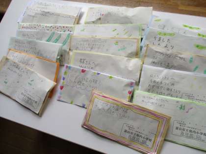今日取った枝豆を大事に封筒に入れた子供たちの代わりに担任が責任をもって届けました。3年生の気持ちが届きますように。