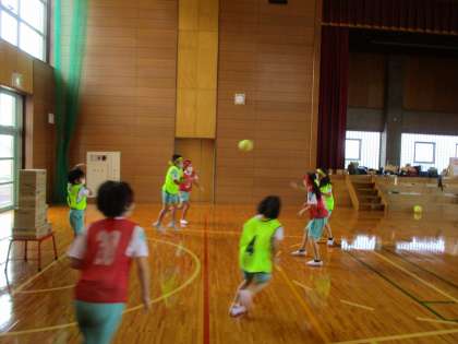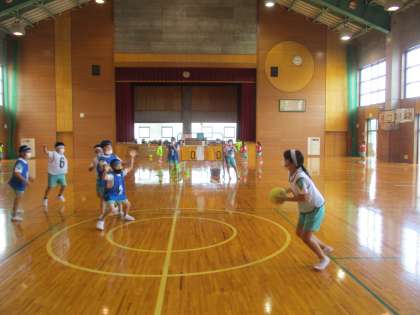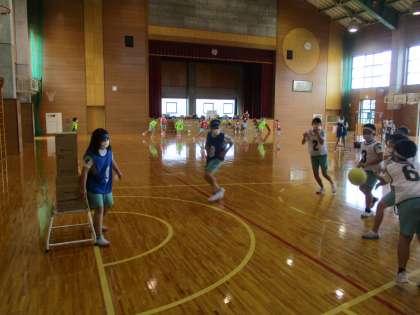 ハンドボールでは熱戦が繰り広げられています。今日の第1試合、赤団vs黄団、白団vs青団は両ゲーム共に激闘の末引き分けとなりました。「絶対決着をつける!」を張り切る子供たちの熱に押され、第2試合も同じカードでの試合にしました。様々な戦術を駆使し力を出し尽くした先に勝利を掴んだのは黄団と青団でした。競技に熱中し、友達と高め合おうとする姿に胸が熱くなりました。