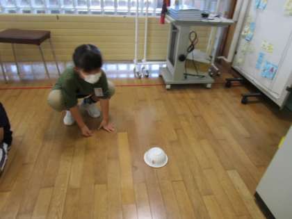 作ったおもちゃはオープンスペースで動きを試しました。
