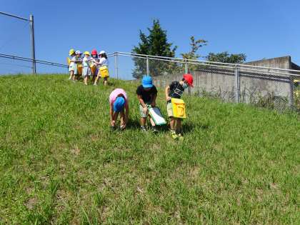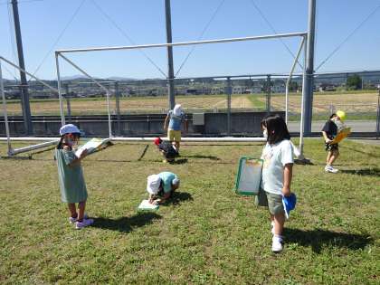 生活科では、「むしとなかよし」の学習が始まりました。今日は、すぐに探しに行かず、どこに虫たちが住んでいるか予想を立てました。「草が好きそうだから、草がたくさんあるところにいそう!」「実をねらって、木の近くにいるかもしれないよ!」と、虫たちが好むところをねらって、探しに行くと、そこにはたくさんの虫たちが、、、!