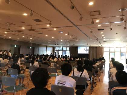 写真は、八尾コミュニティセンターで行われた、八尾地域統合中学校の会場の様子です。
