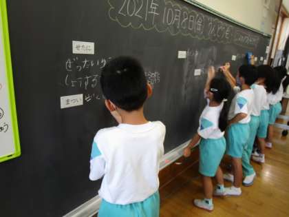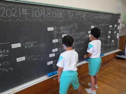 いよいよ明日は運動会です!練習してきた50m走、玉入れ、団ごとのアピール。一人一人、自分の目当てを考えて書きました。自分の力を出して、元気いっぱいな姿が見られると嬉しいです。