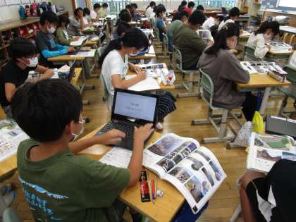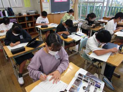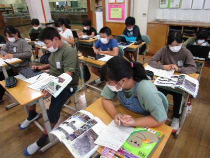 教科書やクロムブックを活用して、熱心に調べたり、分かったことをまとめたりしています。